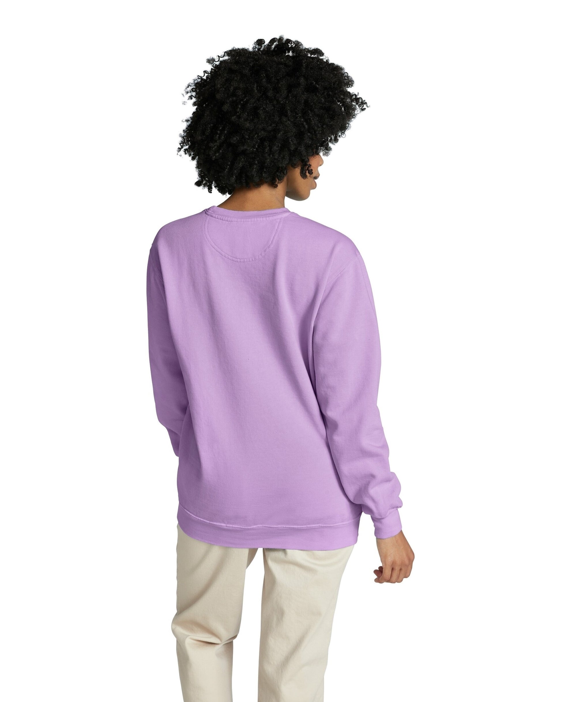 The Comfort Colors Adult Crewneck Sweatshirt offers cozy, durable wear. Crafted from 80% ringspun cotton and 20% polyester, this 9.5 oz. sweatshirt comes in over 20 vibrant colors. Features include a sideseamed body, forward rolled shoulders, and double-needle stitching for enhanced durability. It's preshrunk and soft-washed, ensuring a comfortable fit and feel that improves with each wash. Ideal for heat transfer vinyl, embroidery, and screenprinting, its robust fabric supports frequent customization and washing, maintaining shape and quality. Optimal for personalized gifts and boutique items.