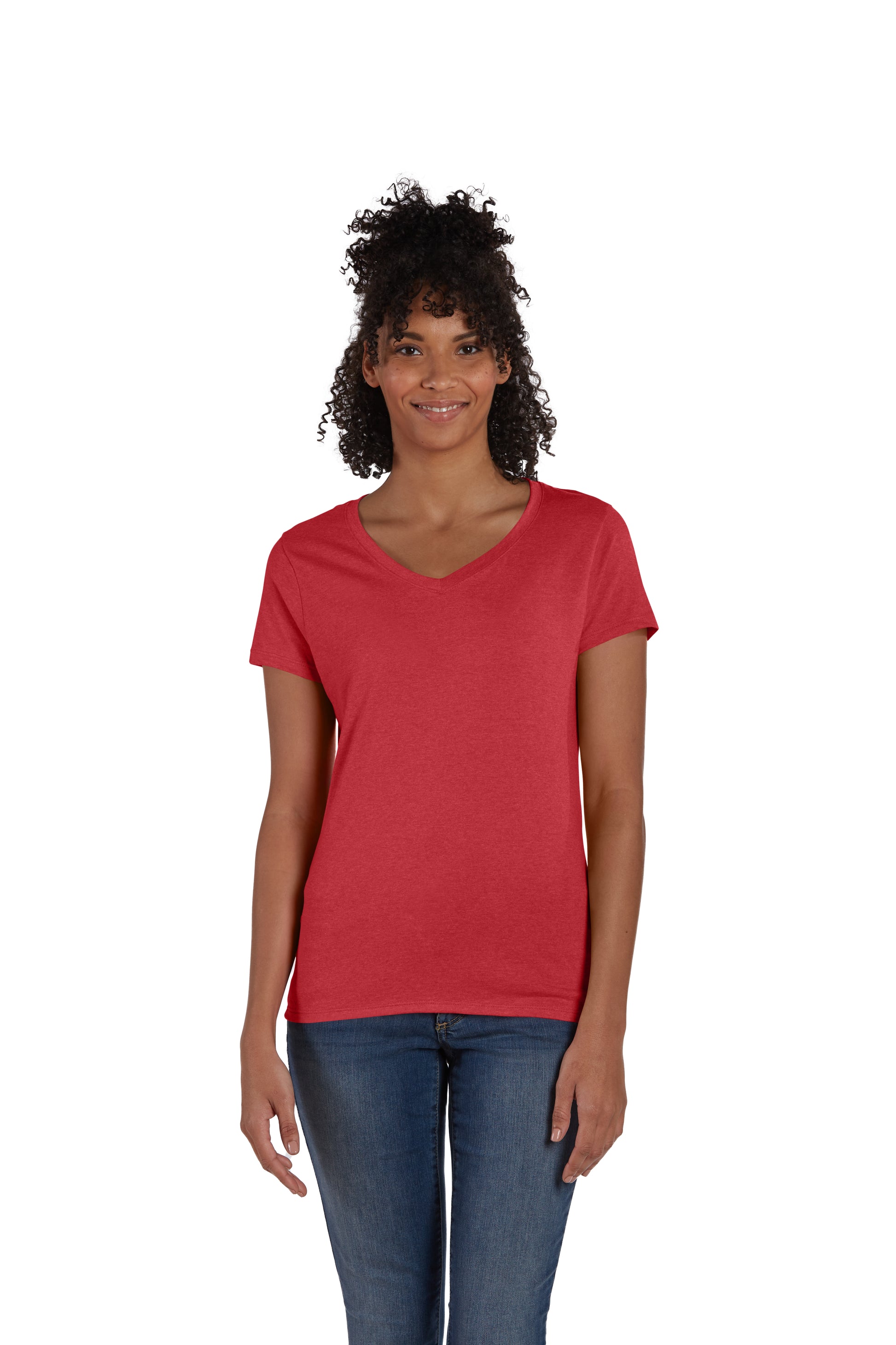 Hanes 42VT - Women's Perfect-T Triblend Short Sleeve V-neck - Red Triblend
